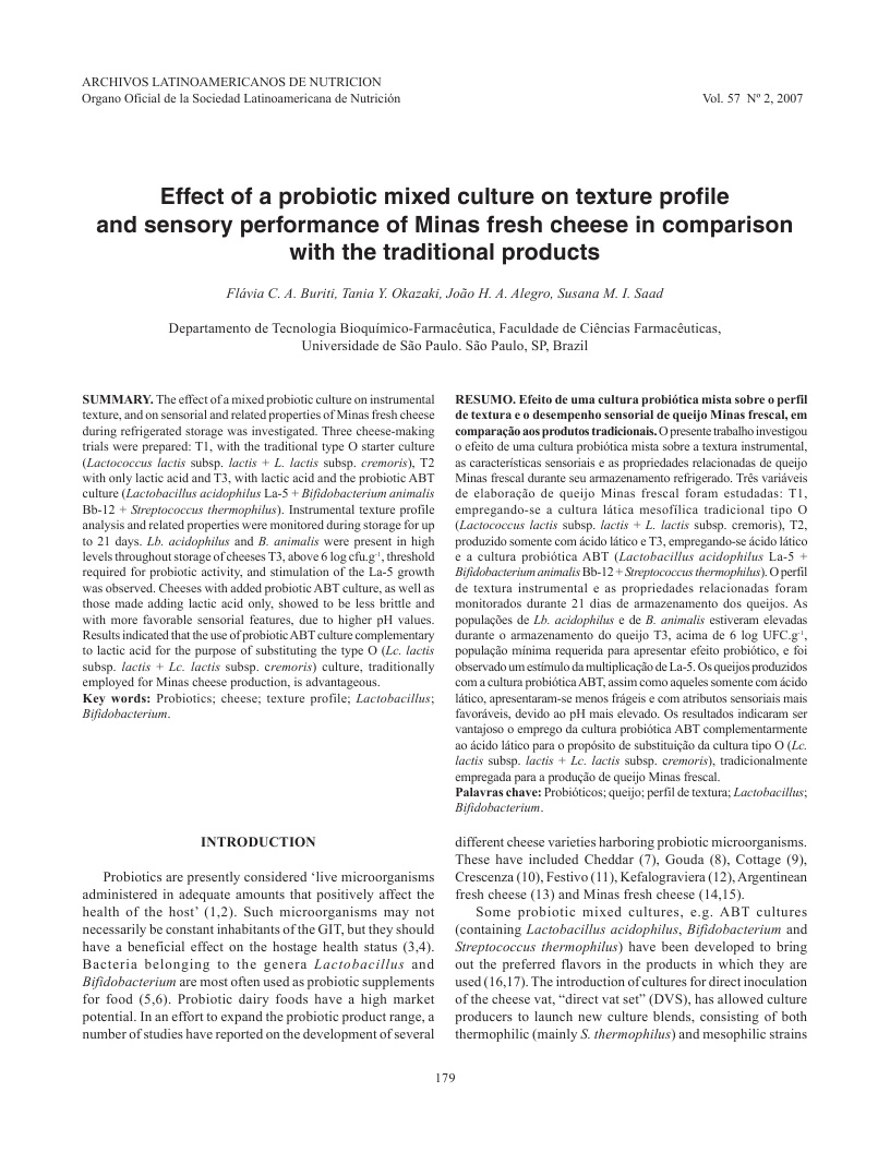 Flávia C A Buriti, Tania Y Okazaki, João H A Alegro, Susana M I Saad