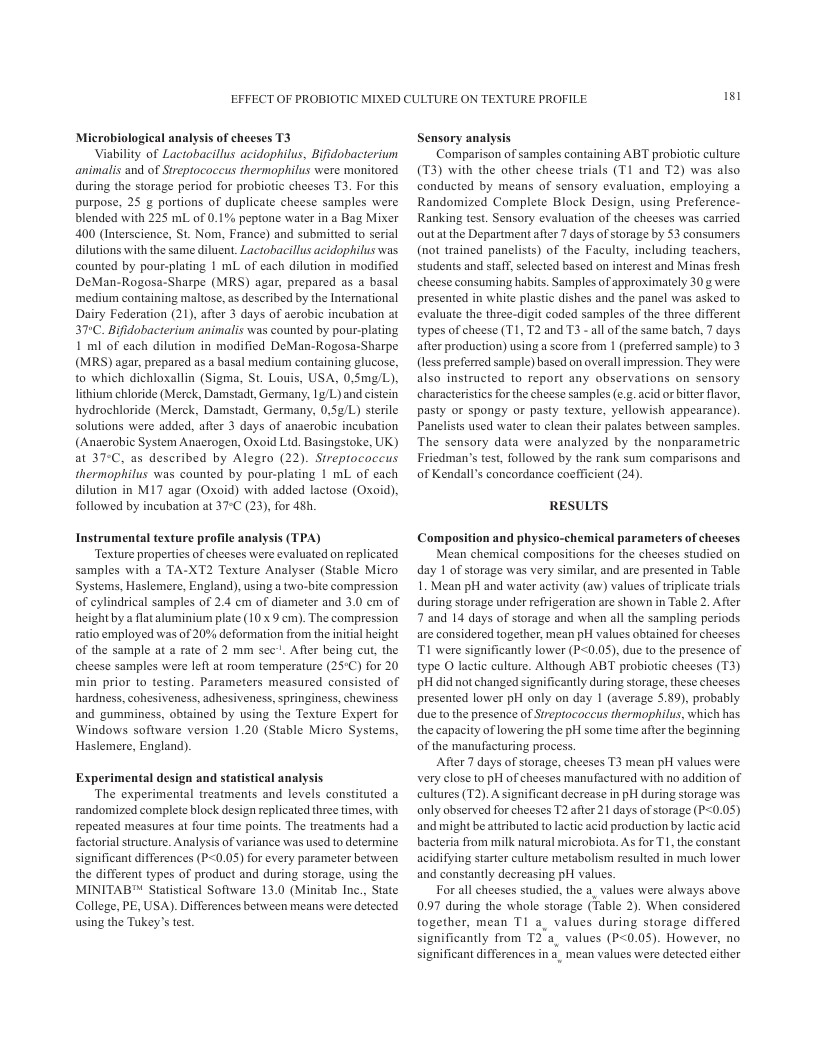 Effect of a probiotic mixed culture on texture profile and sensory performance of Minas fresh cheese in comparison with the traditional products