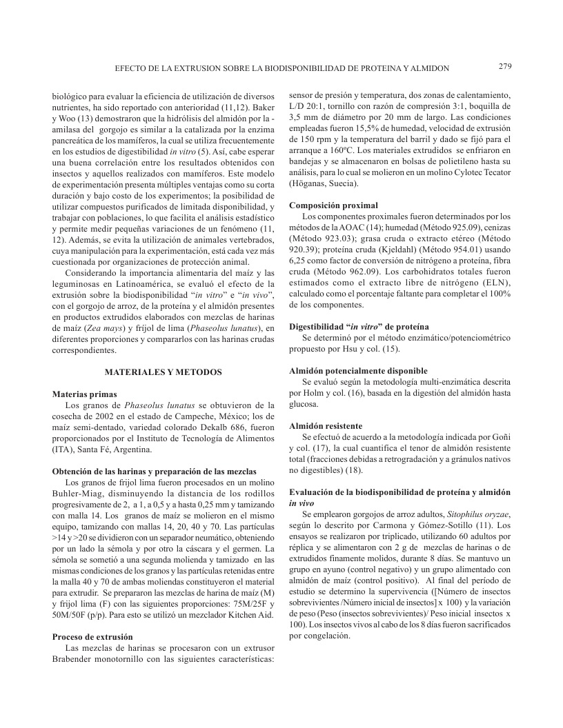 Efecto de la extrusión sobre la biodisponibilidad de proteína y almidón en mezclas de harinas de maíz y frijol lima