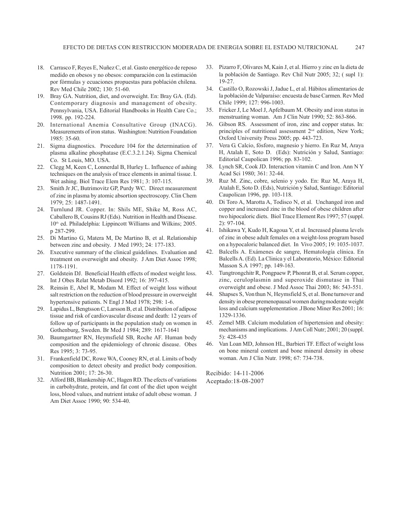 Efecto de dietas con restricción moderada de energía sobre el estado nutricional de algunos minerales en mujeres obesas