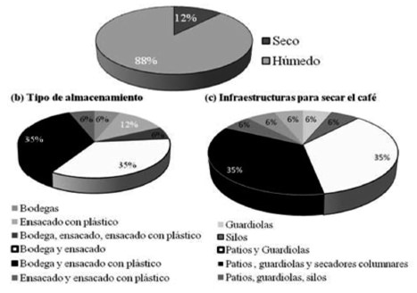 En la Figura 1, se presentan los resultados de la encuesta con relación al tipo de infraestructura y almacenamiento del café en los beneficios.