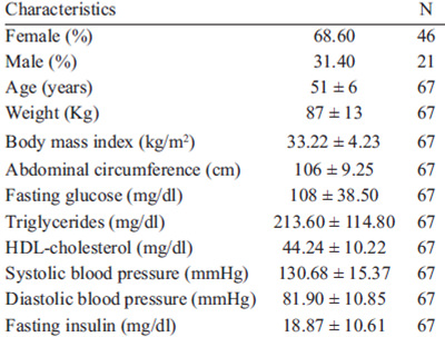 Mean age of the population studied was 51 + 6 years, and 68.6% were women. The study population characteristics are described in Table 1.