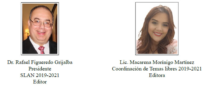 Debido a la pandemia por COVID-19, la presidencia del evento junto con los asesores nacionales e internaciones hemos tomado la difícil decisión de no realizar el Congreso SLAN 2021 en la modalidad presencial, tal como se proyectó inicialmente y como han sido las versiones anteriores. Sin embargo, a modo de garantizar que la comunidad científica del área de nutrición de Latinoamérica tuviera la oportunidad de compartir, participar y aprender en este nuevo contexto situacional, excepcionalmente, el evento y todo su contenido fue convertido a la modalidad virtual.